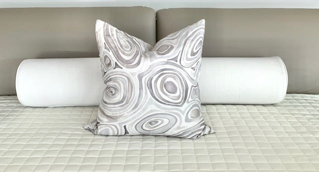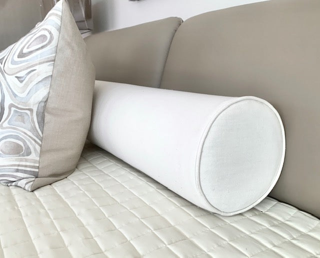 COJÍN CILINDRO PARA DECORACIÓN DE CAMA O BANCA.