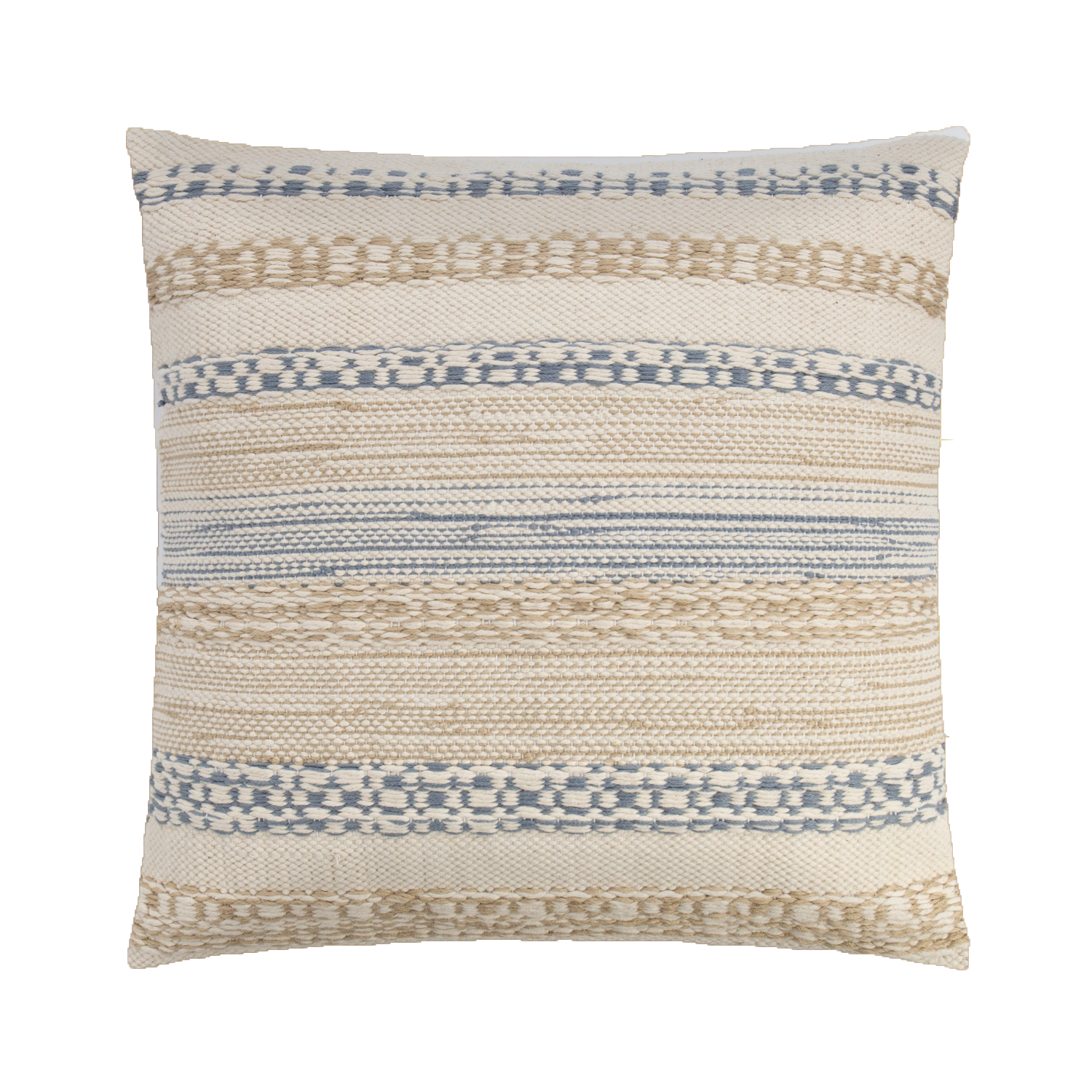 COJIN TEJIDO NATURAL VALLARTA BEIGE CON LINEAS Y DETALLES AZULES