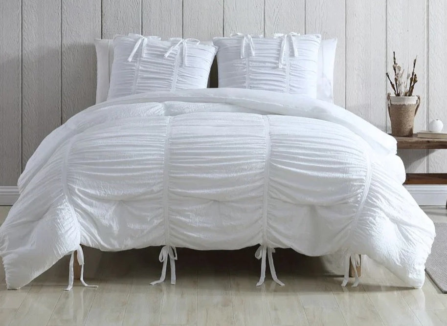 Set de edredón extra suave y fresco. Con detalle corrugado y listones para un look elegante.